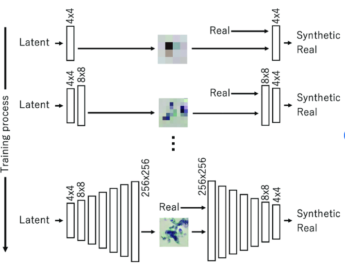 PGGAN(PixelGAN) PGGAN은 "Progressive Growing of GANs"의 약자로, 픽셀 수준의 이미지 생성에 중점을 둔 모델 PGGAN은 단계적으로 해상도를 키우면서 이미지를 생성하는 방식이며, 먼저 매우 작은 해상도의 이미지부터 시작하여 점진적으로 해상도를 키워가며 생성함. 각 단계에서는 이미지 생성에 사용되는 신경망의 크기와 깊이를 조절하며 작은 해상도의 이미지에서는 작은 신경망을 사용하고, 점진적으로 더 큰 신경망을 사용하여 더 높은 해상도의 이미지를 생성함. 이러한 접근 방식은 높은 해상도의 이미지를 생성하는 데 안정적으로 학습할 수 있음. Torch 코드 구현 import torch import torch.nn as nn class Generator(nn.Module): ..